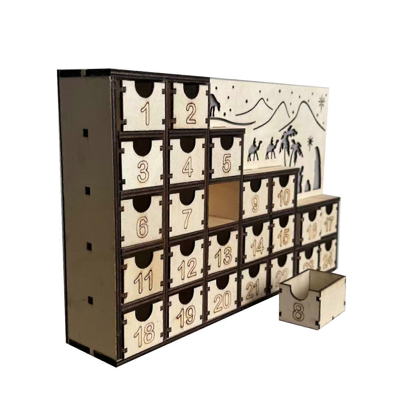 Illuminated Wooden Nativity Advent Calendar Cabinet with LED Lights for Christmas Decoration Festival Decorating Tool Multicolor