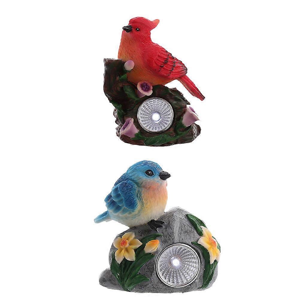 Garden Decorative Style Solar Lights 2Pcs Bird-shaped Resin Lanterns Assorted Color Solar-powered Outdoor Lighting