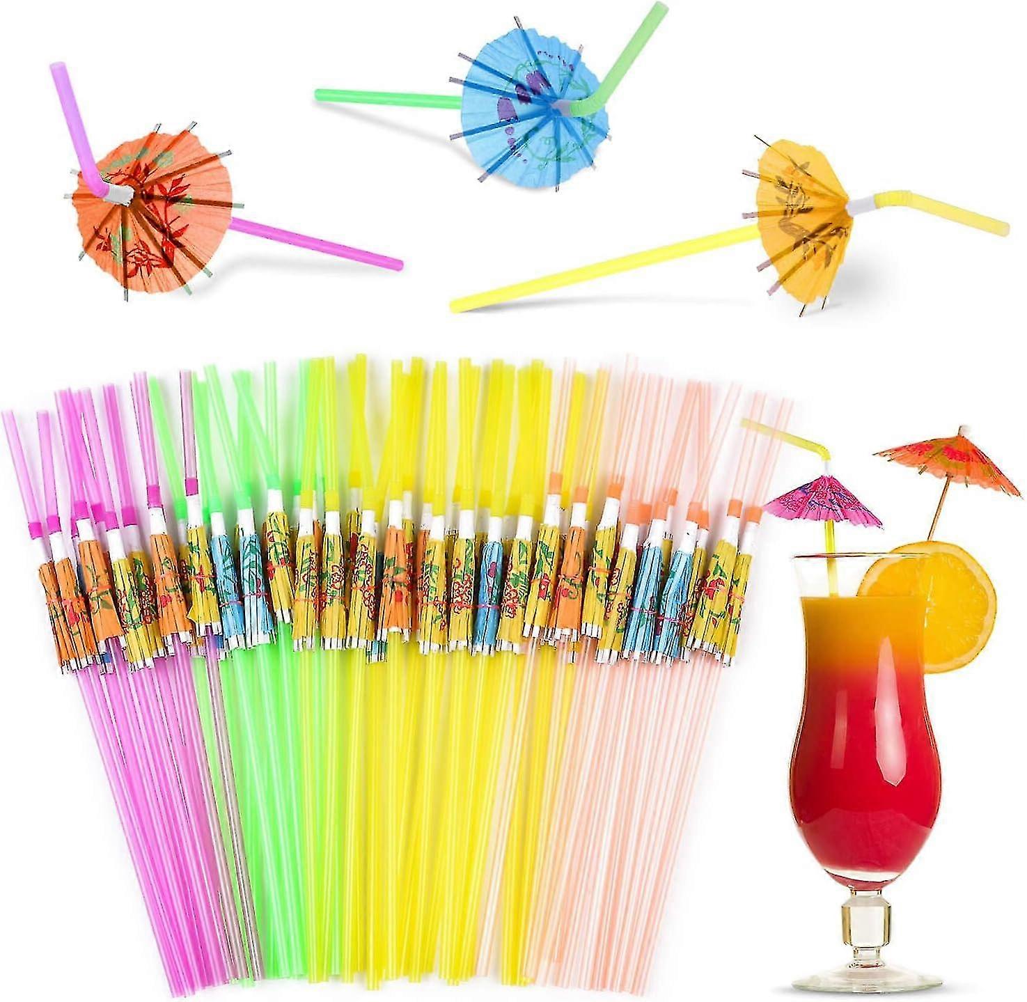 Hawaiian Party Straws 50pcs Umbrella Straws For Cocktails Drink Umbrella Straws For Tropical Hawaiian Luau Party Decorations (assorted Colors)