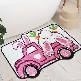 Easter Bath Mat, Bunny Teal Truck Bathroom Rugs - Farmhouse Easter Decorations for The Home - Spring Cute Bathroom Rugs 16x24 Inches