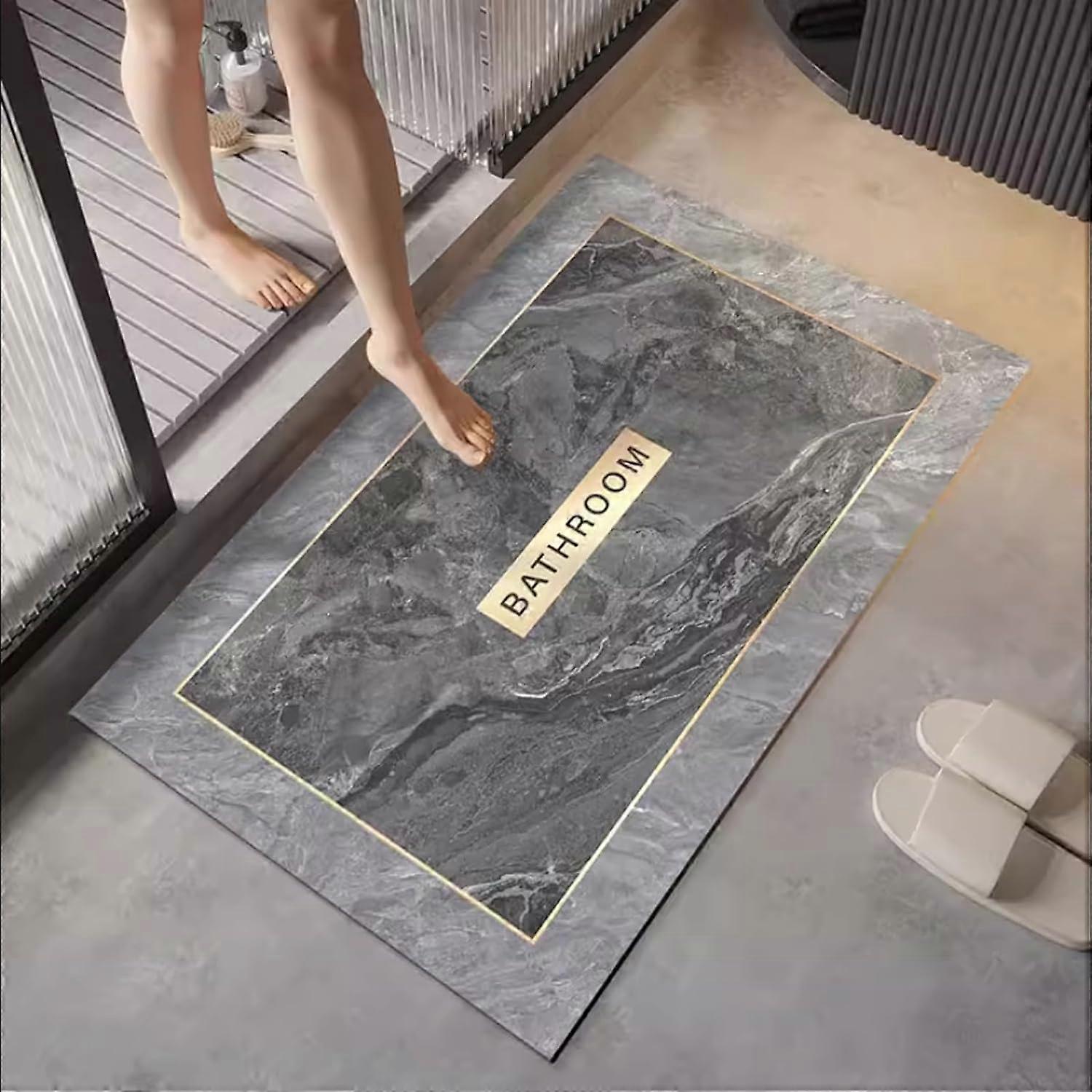 Bath Rug Shower Mat for Bathroom - 24x16 Non Slip Washable & Absorbent Floor Mats Quick Dry Thin Bathmat for Bathtub, Shower, Toilet & Kitchen Grey