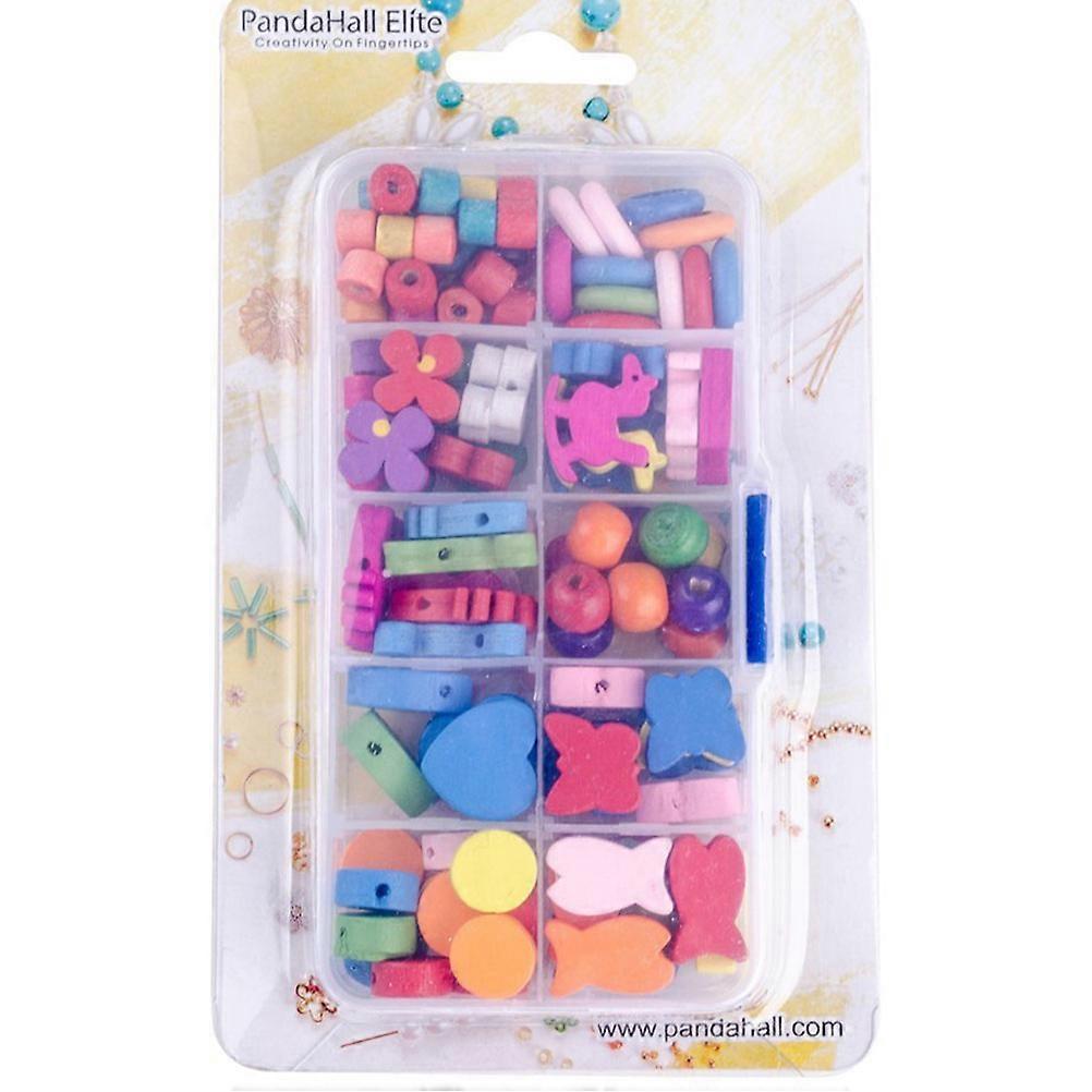 Beads For Jewelry Making Natural Wood Beads Diy Craft Beads For Kids Mixed Color 106Pcs