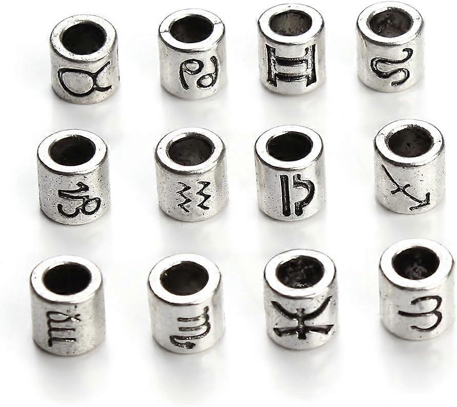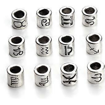 Beads 60 Pcs Antique Silver Tone Zodiac Beads Charm 4mm Hole Horoscope Beads Fit European Bracelet