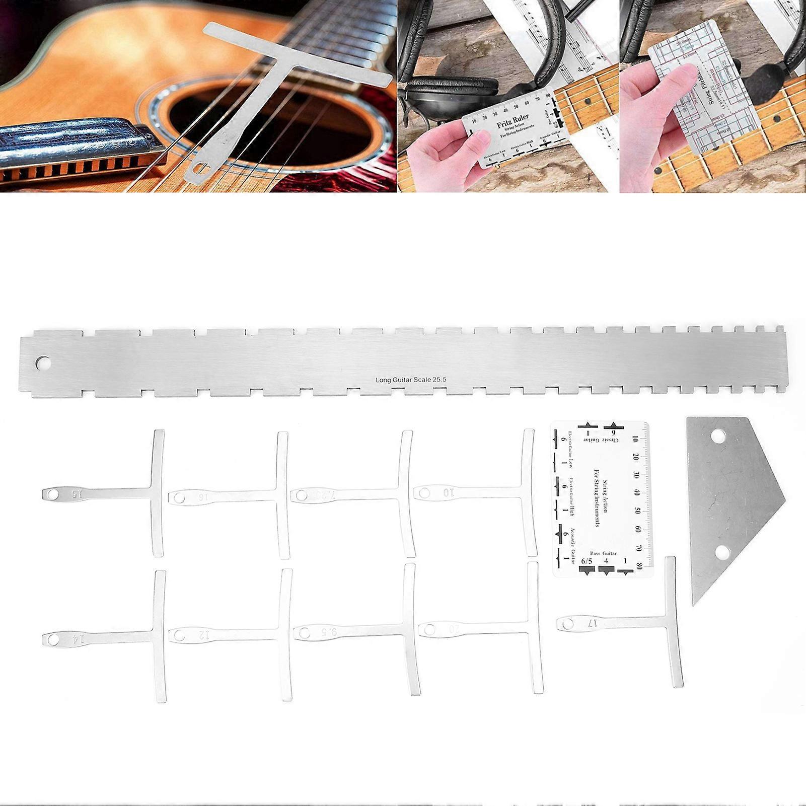 Guitar Ruler MultiFunction Measuring Tools Gauge Set for Maintaining Adjusting Strings Item Type: Guitar Ruler Material: Metal + Stainless Steel Applicable Musical Instrument: Guitar