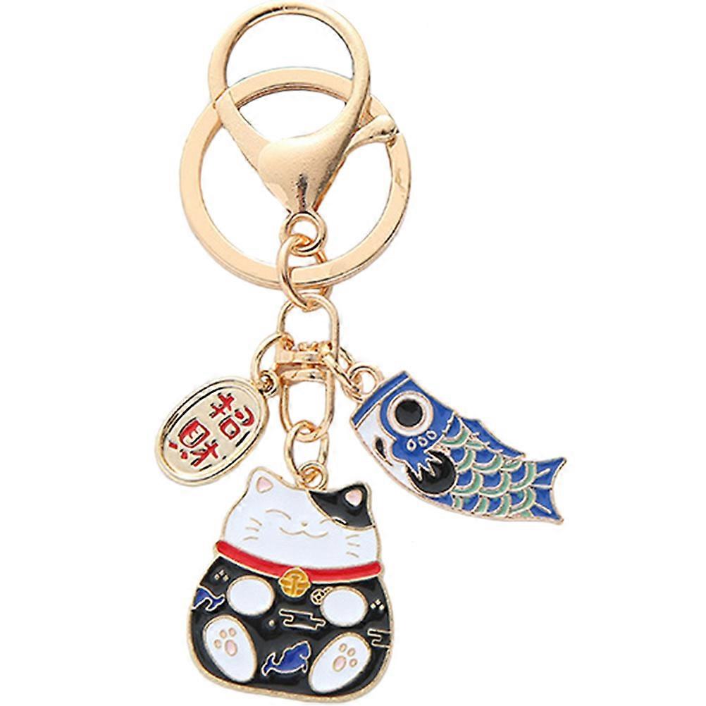 Cute Cat Metal Keychain Japanese Style Bag Accessories For New Year Celebration Blue 9X2.5X0.1CM Decoration 1Pcs