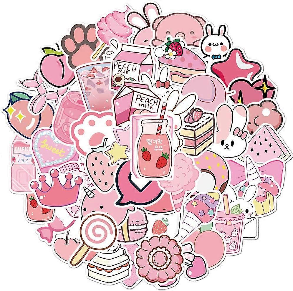 Cute Stickers for Water Bottles 50PCS, Waterproof Vinyl Aesthetic Pink VSCO Stickers for Hydroflask Laptop Skateboard, Kawaii Sticker Pack for Kids Te