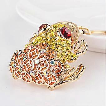 Cute Animianl Keychains for Women Bling Frog Key Ring for Girl Purse Bag or Car Pendant, Yellow