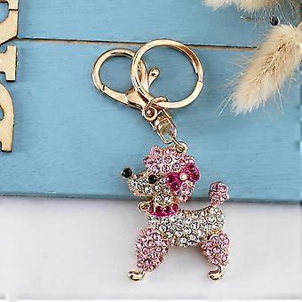 Cute Animial Keychains for Women Bling Poodle Dog Key Ring for Girl Purse Bag or Car Pendant, Pink