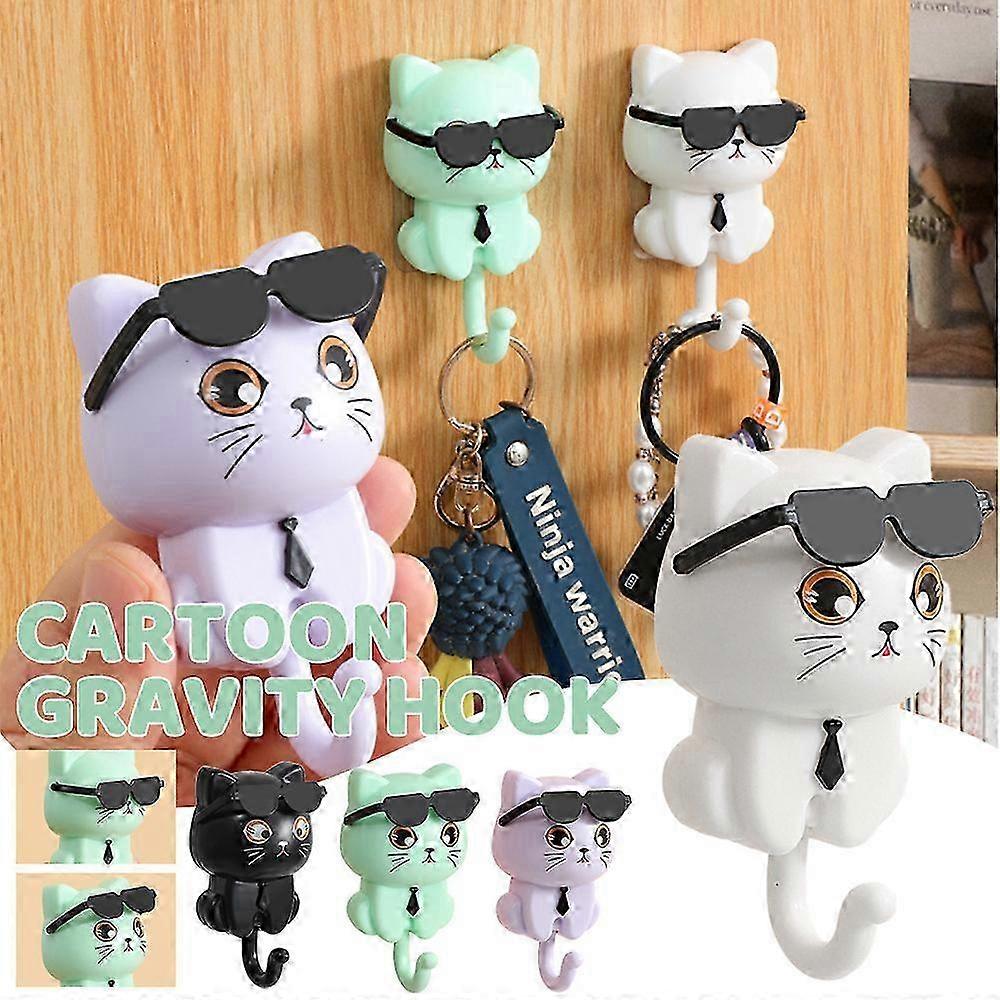 Cute Cat with Sunglasses Key Holder Adhesive Hook Household Wall Decor Hooks