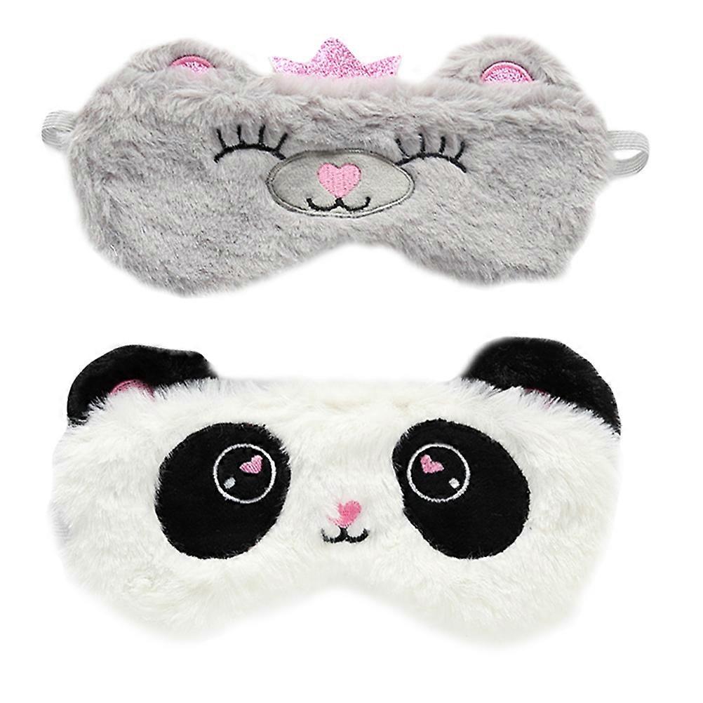 Cute Animal Sleep Mask Plush Eye Mask Cartoon Design Panda Bear Eye Patches 2Pack For Home Office Travel