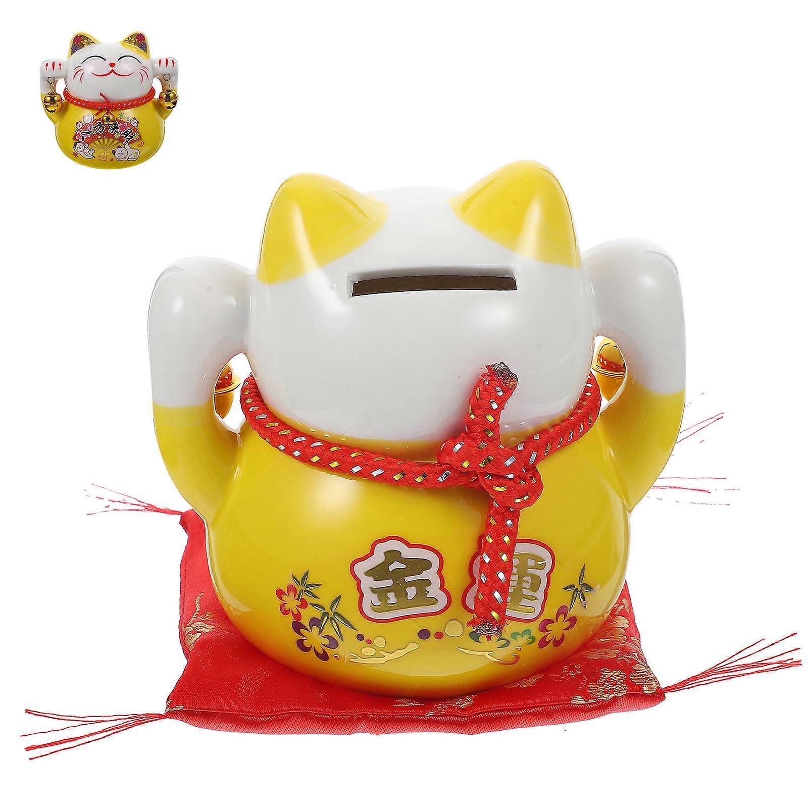 Cute Piggy Bank Ceramic Money Saving Fortune Cat Design For Adults New Year 4.91X4.52X3.54in Coin Storage 4Pcs