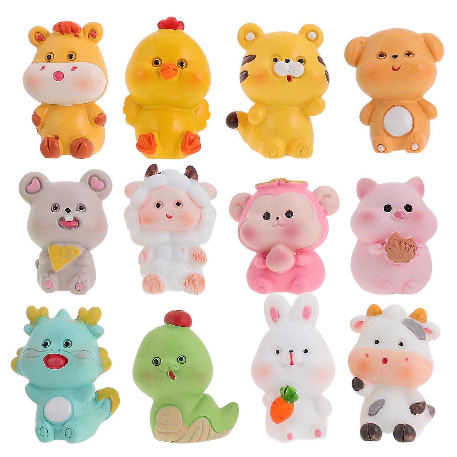 Cute Animal Car Dashboard Decoration Mini Resin Figurine Assorted Color For Girls 12Pcs