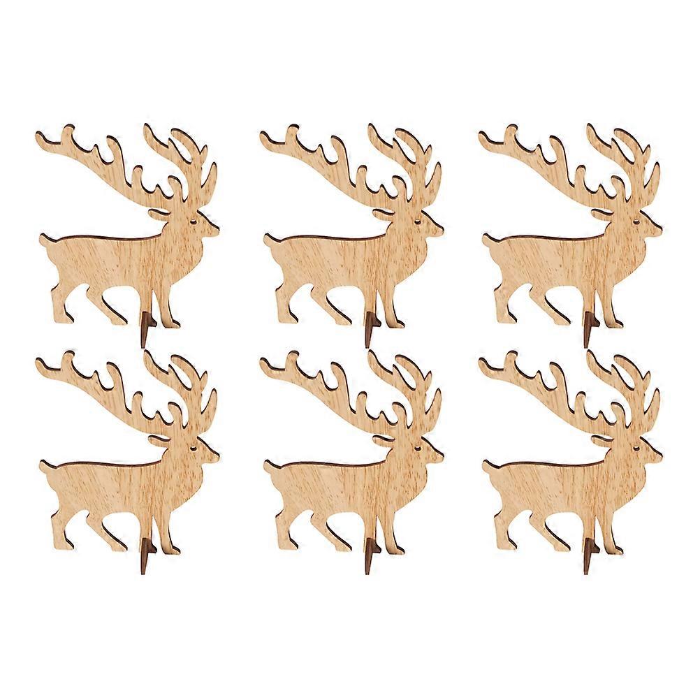 Cute Cartoon Elk Ornaments Wooden Decor for Families Friends Desktop Show Window Cabinet Christmas Large 6Pcs