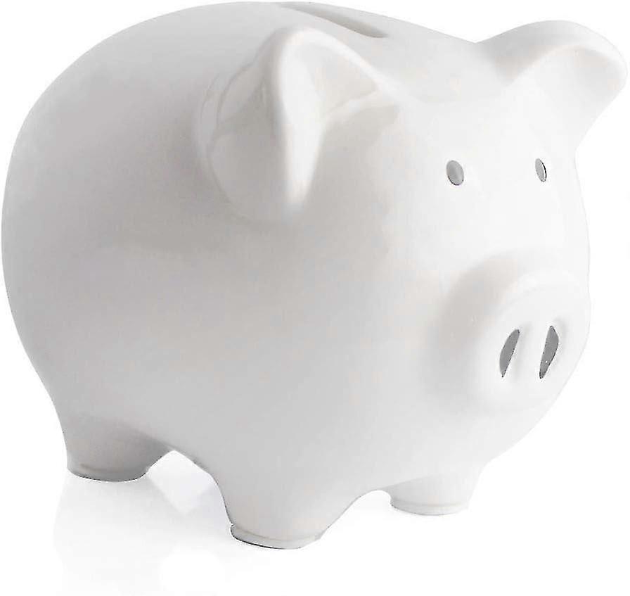 Cute Classic Ceramic Money Box, Mini and Small, Makes a Perfect Unique Gift, Nursery Decoration, Keepsake or Piggy Bank for Kids Adult (White, M)