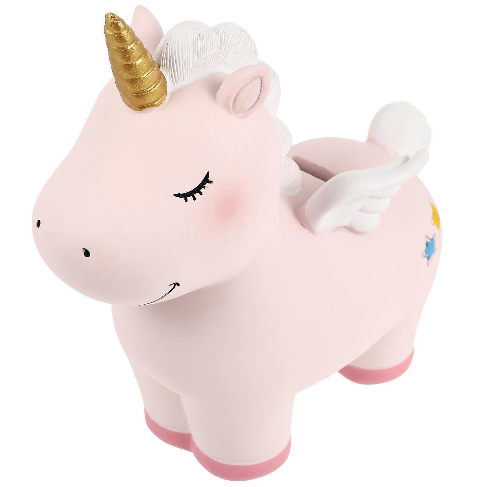 This money pot is made of , helping your child keep spare changes, coins, and so on organized and easy to find. for home, shop or office and more. Your little boys and girls will glad to receive this saving jar as a birthday present. Features - Material: Resin. - Fine craftsmanship with smooth surface and clear contour. - The small pads on the legs also make it resistant and protect furniture. - A beautiful unicorn piggy bank, perfect for encouraging kids to start saving their pocket money. - Features the compact size, without taking up too much space, stylish and delicate. - The carefully designed packaging makes the perfect present for all unicorn fans big and small. - Note: Please note that if you put money into it, the money inside can't be taken out. Package list: 1 x unicorn piggy bank