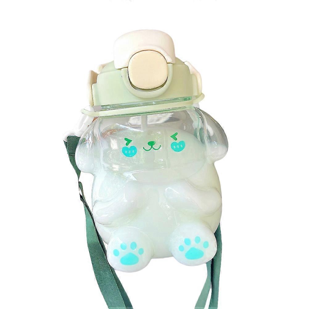 Cute Rabbit Water Bottle With Straw Large Capacity Plastic Drinking Bottle With Adjustable Shoulder Strap For Camping Sports Travel Picnic