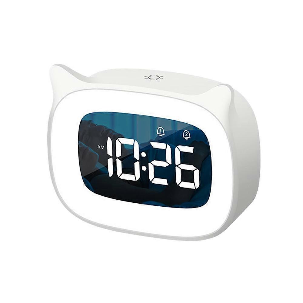 Cute Alarm Clock With Night Light, Wake Clock For Kids,Table Clock Gifts-White