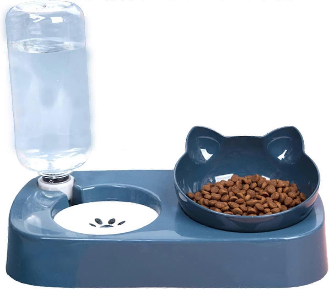 Cute cat food bowl water bowl set. Indoor cats use tilted raised cat food bowls and removable elevated cat bowl racks.