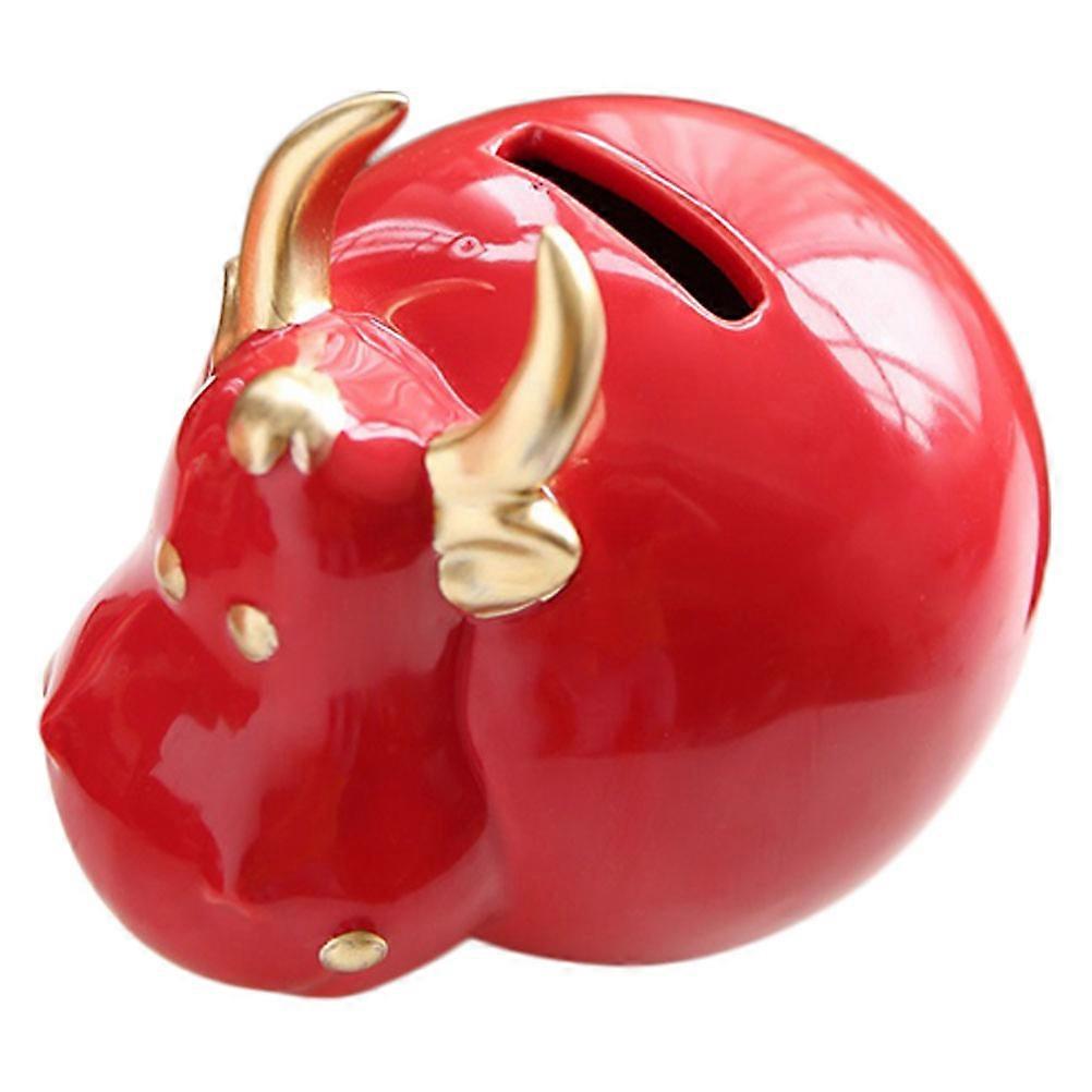 Cute Money Bank Cattle Shape Childrens Piggy Bank Red Traditional Zodiac Design 1Pc