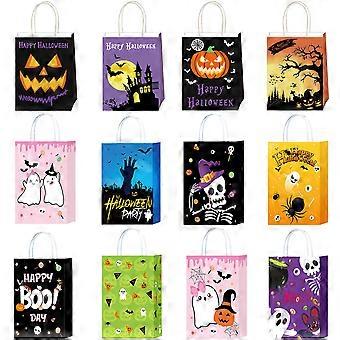 Halloween Paper Gift Bags With Handle 12-60pcs Pumpkin Castle Ghost Kraft Paper Bags for Kids Trick or Treat Party Favors Decors