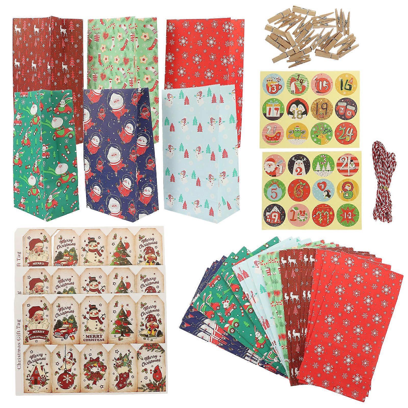 Paper Bags Small Wrapping Bags Advent Calendar Style Multi-Colored 23.00X12.00X7.50Cm Storage for Candy 1Set
