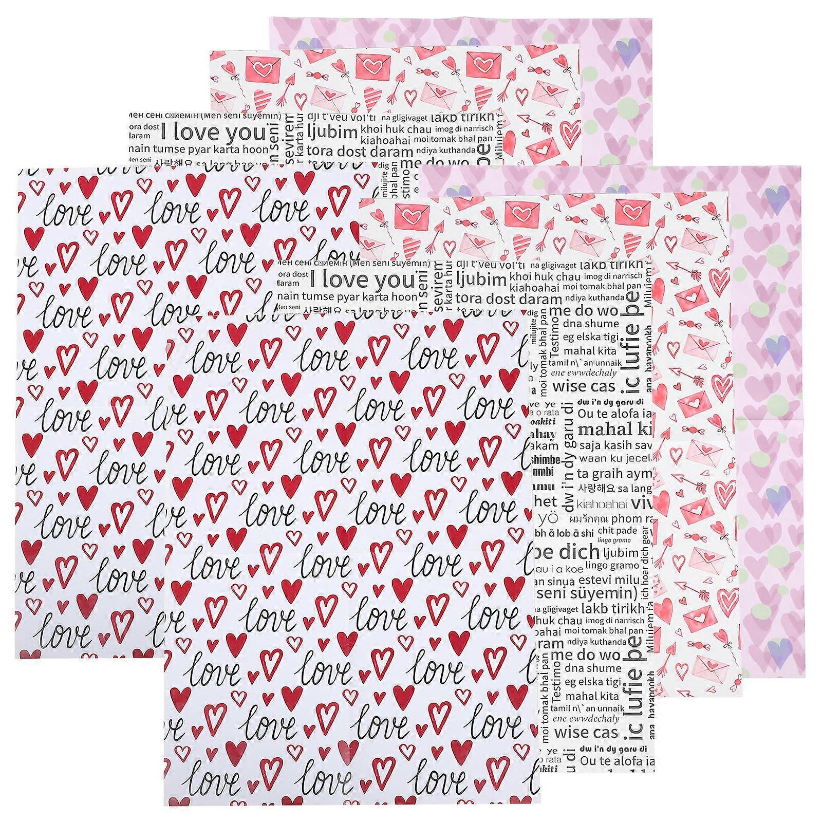 Valentine's Day Wrapping Paper Romantic Kraft Paper for Heart Gift Wrap 8Pcs