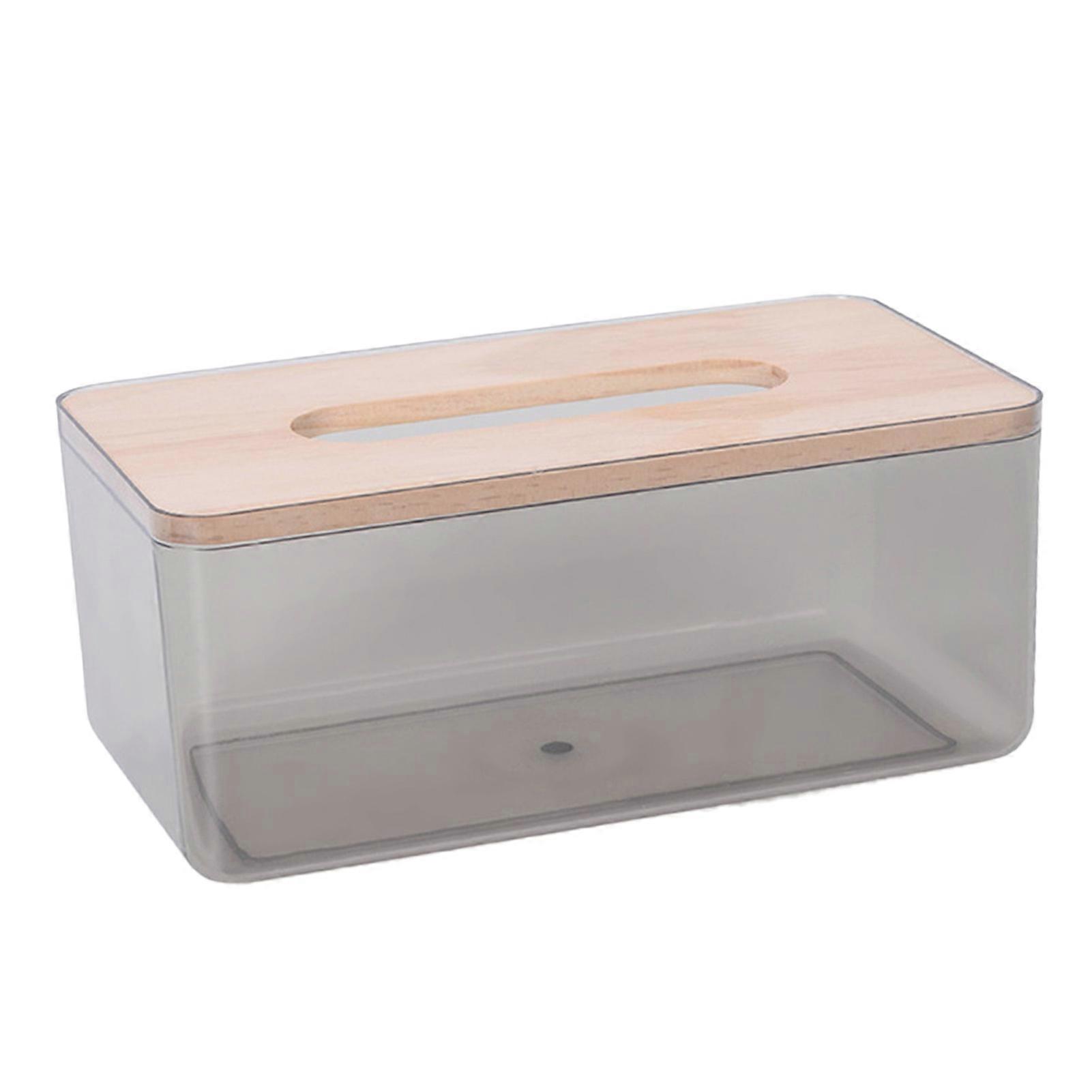 Tissue Box Holder Transparent Box Wear Resistant PP Compressed Wood Napkin Box with Nonslip Bottom for Home Living RoomBlack Large