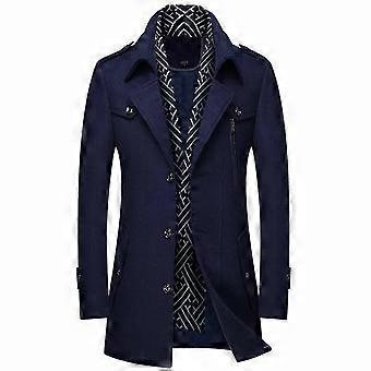 Winter Men Wool Coats New Fashion Middle Long Scarf Collar Cotton-Padded Thick Warm Woolen Coat Male Trench Coat Overcoat