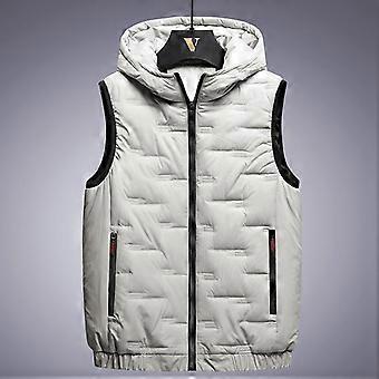 Winter Hooded Vest Men Pleated Solid Padded Vest Windproof Warm Sleeveless Jacket Homme Casual Waistcoat Thicken Parkas