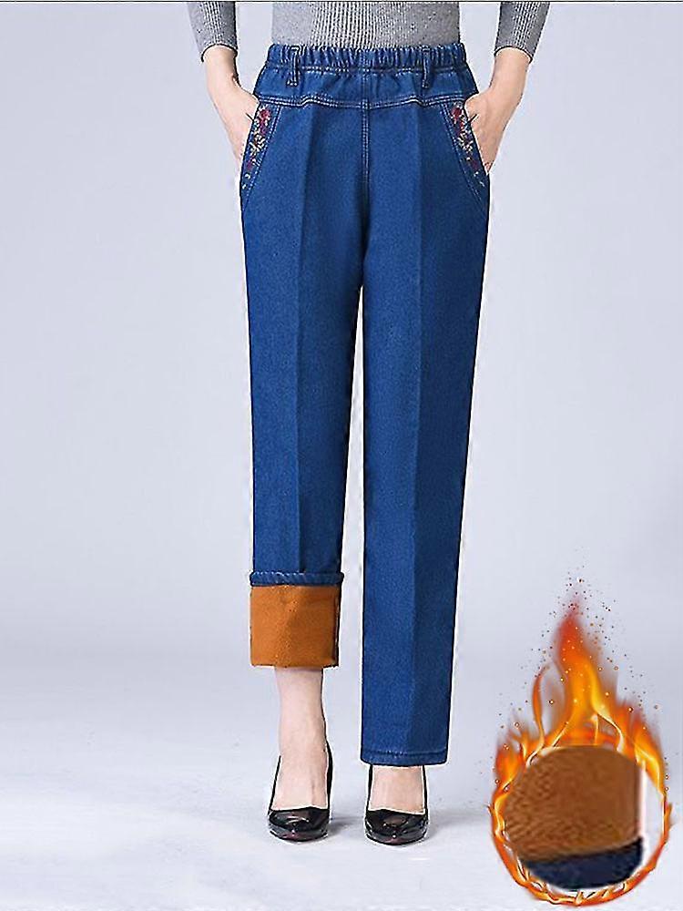 Winter Velvet Lined Baggy Jeans Straight Pants Mom Plush Elastic High Waist Vaqueros Pantalones Vintage Warm Thick Denim Broek