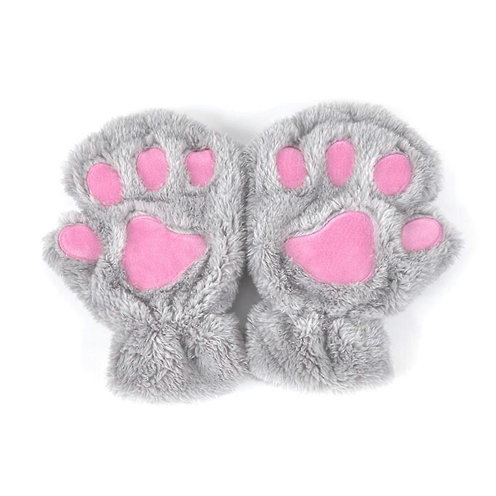 Winter Women Cute for Cat Paw Claw Plush Mittens Short Fingerless Finger Half Gl light grey