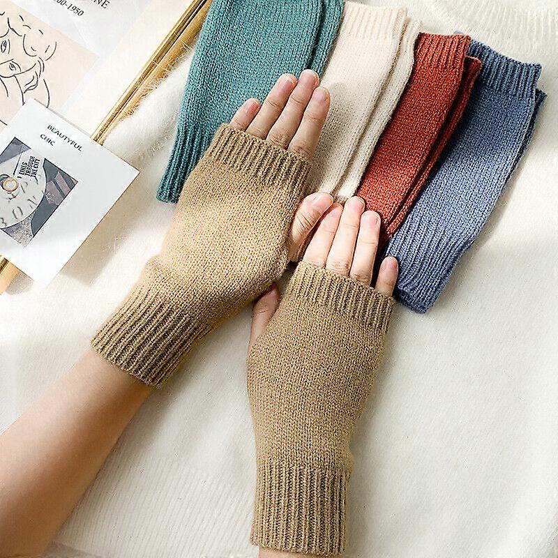 Winter Warm Fingerless Knitted Gloves Crochet Knitting Elastic Cycling Mittens