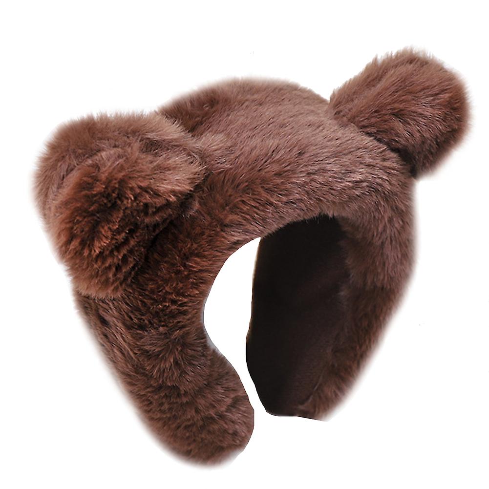 Winter Solid Color Furry Animal Ears Hair Hoop Women Wash Face Wide Headband
