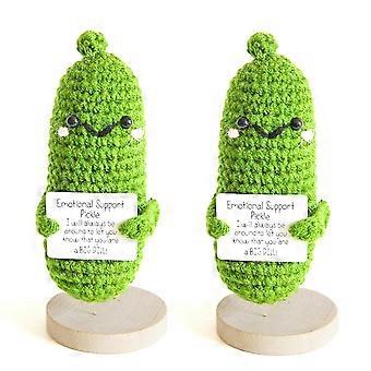 Handmade Emotional Support Cucumber Gift, Cute Handwoven Ornaments, Handmade Emotional Support Pickle With Wooden Base