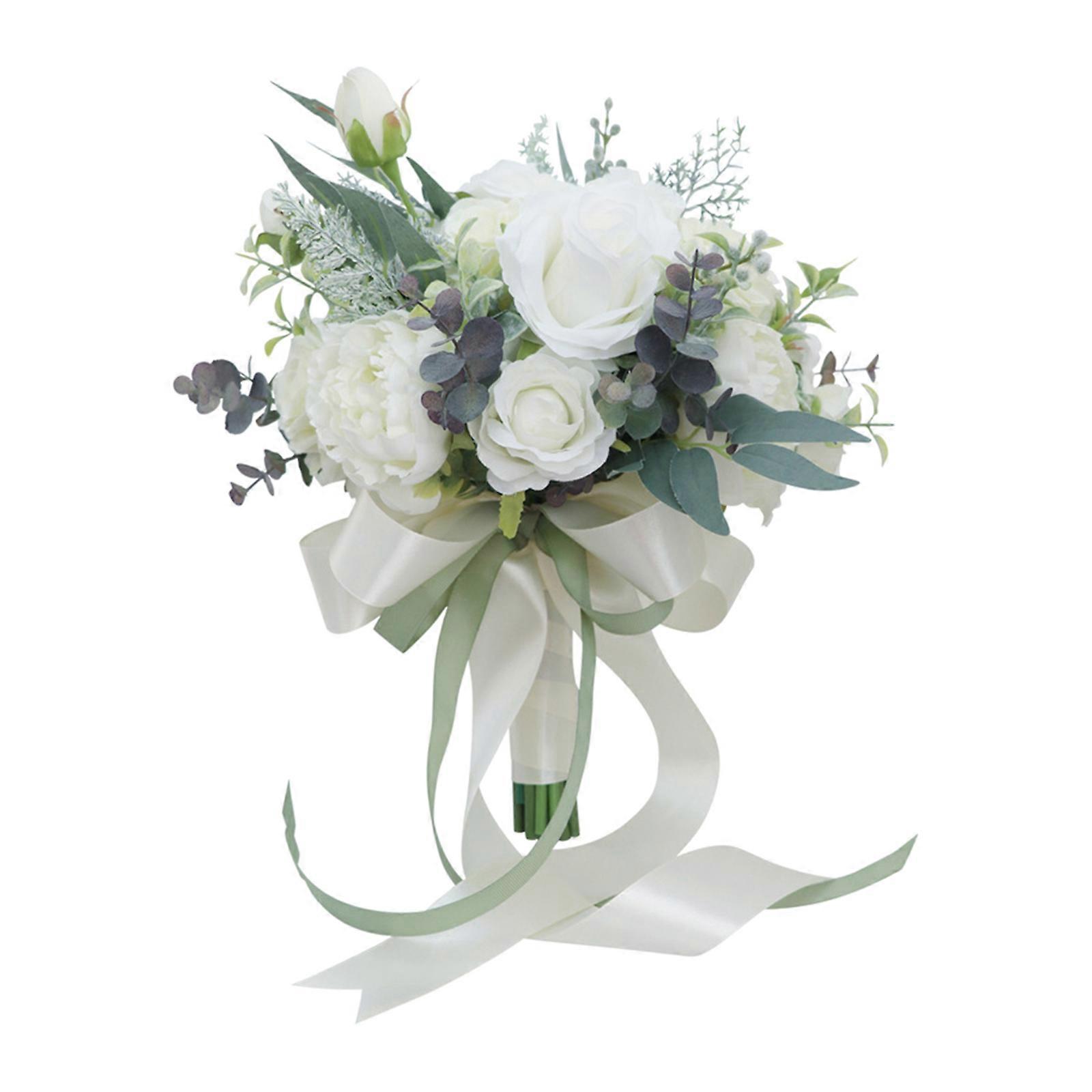 Hand Bouquet Artificial Silk Flowers White Rose Peony Floral Ornament for Women Teenager Girl Photo Props Multicolor