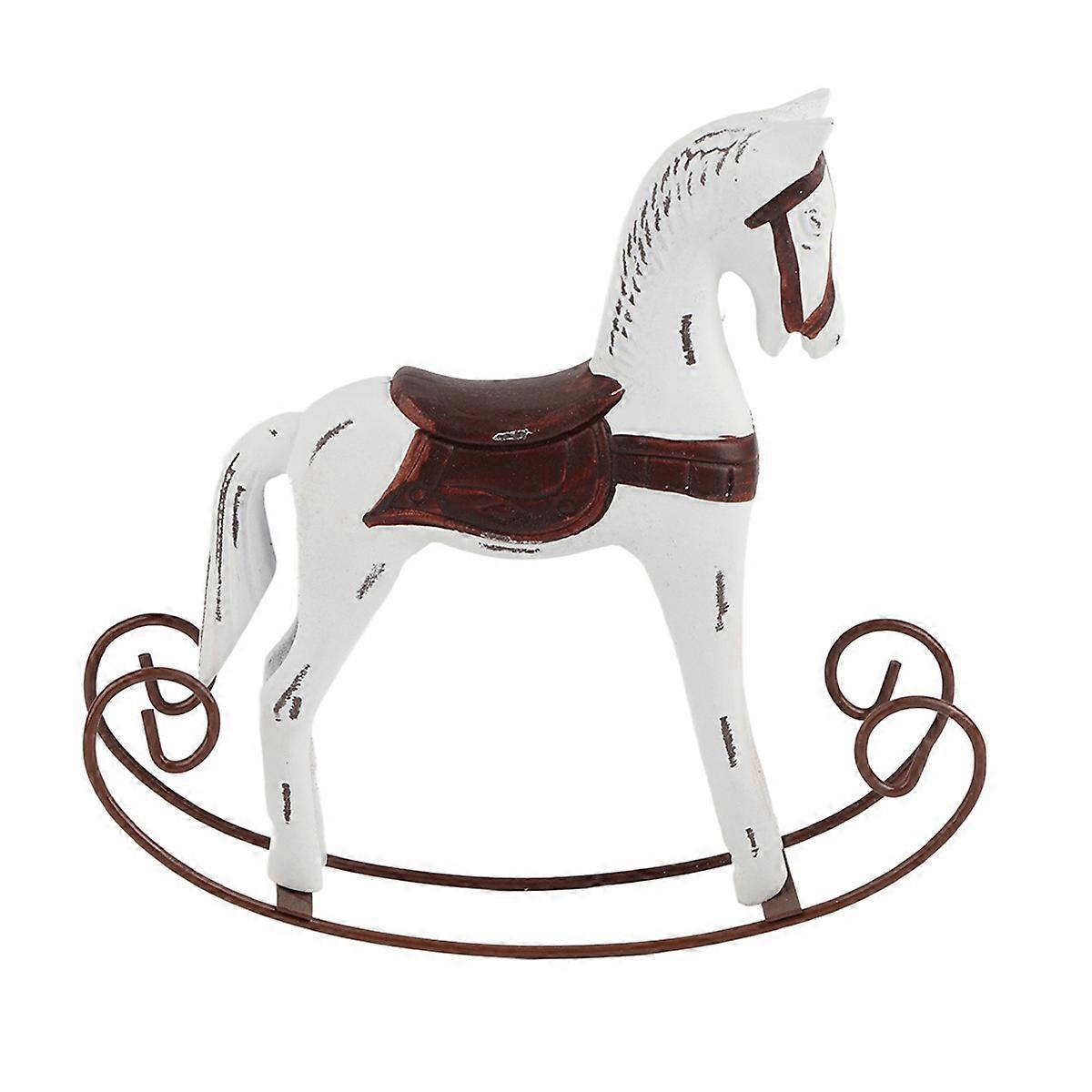Handmade Wooden Rocking Horse, Carved Painted Kids Toy Gift, Table Decoration (White)