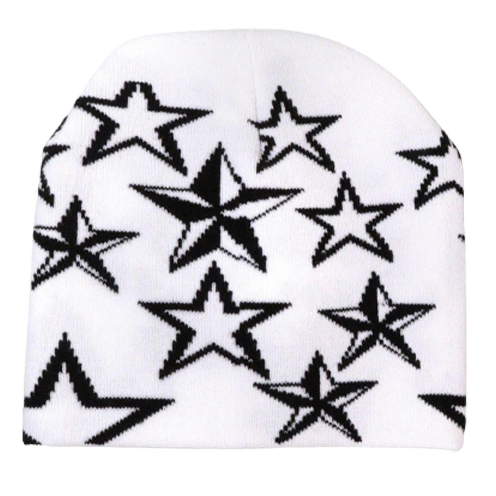 Handmade Jacquard Star Hat Y2K Cool Girl Soft Skull Hat Pilling-Resistant Autumn Winter Beanie Hat Casual Pullover Hat white and black