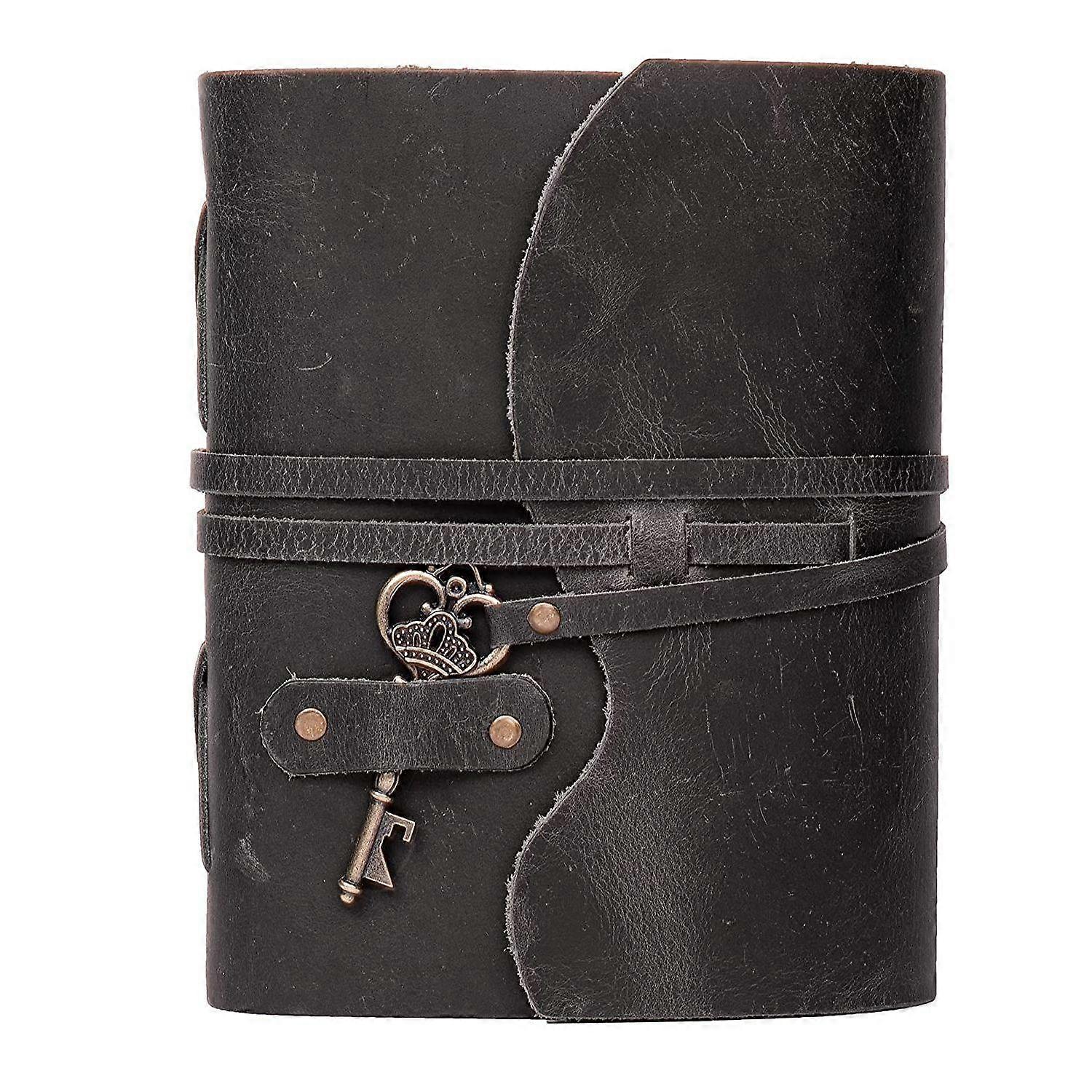 Handmade Vintage Leather Diary - Vintage Handmade Pages - Antique Key Closure - Black Color. Size 6x4 inches