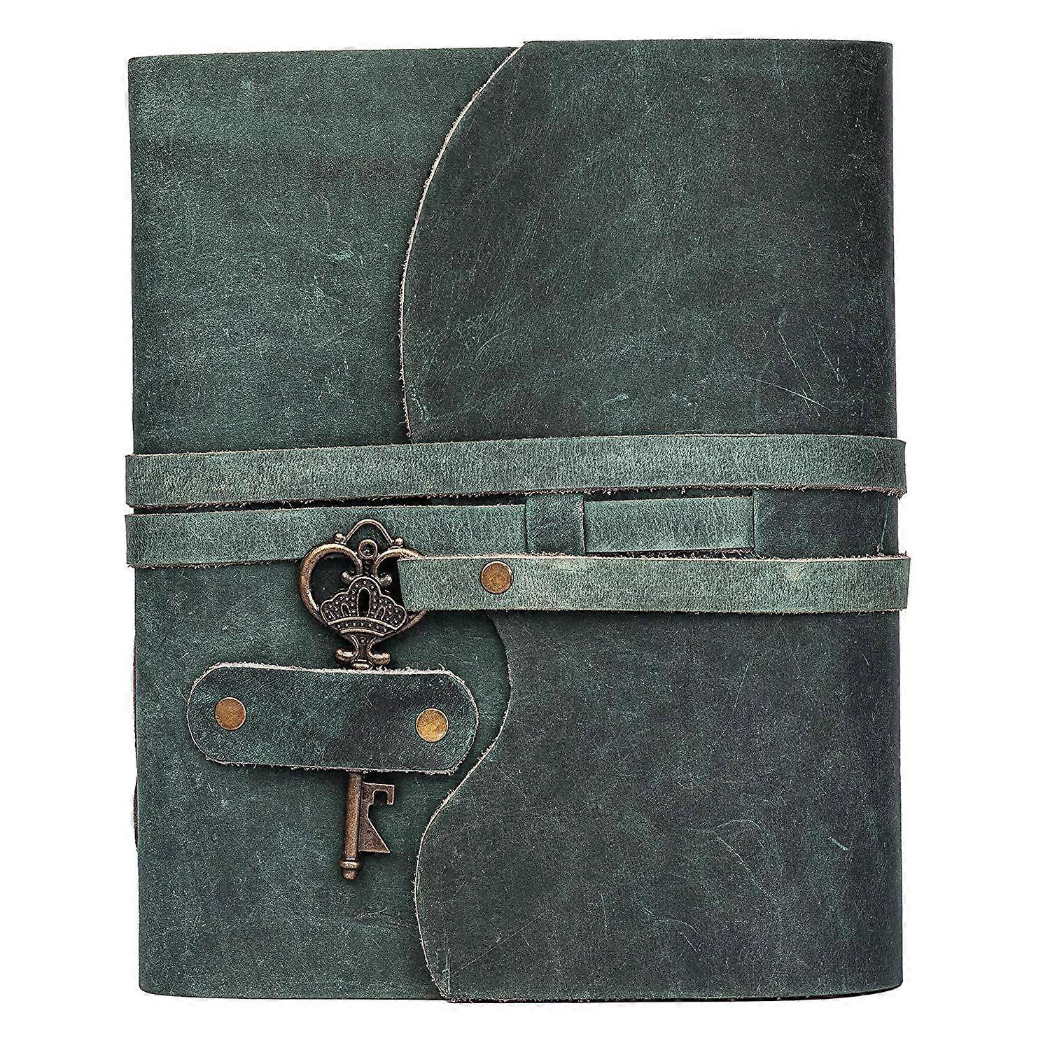 Handmade Vintage Leather Diary - Vintage Handmade Pages - Antique Key Closure - Cobalt Color. Size 6x4 inches