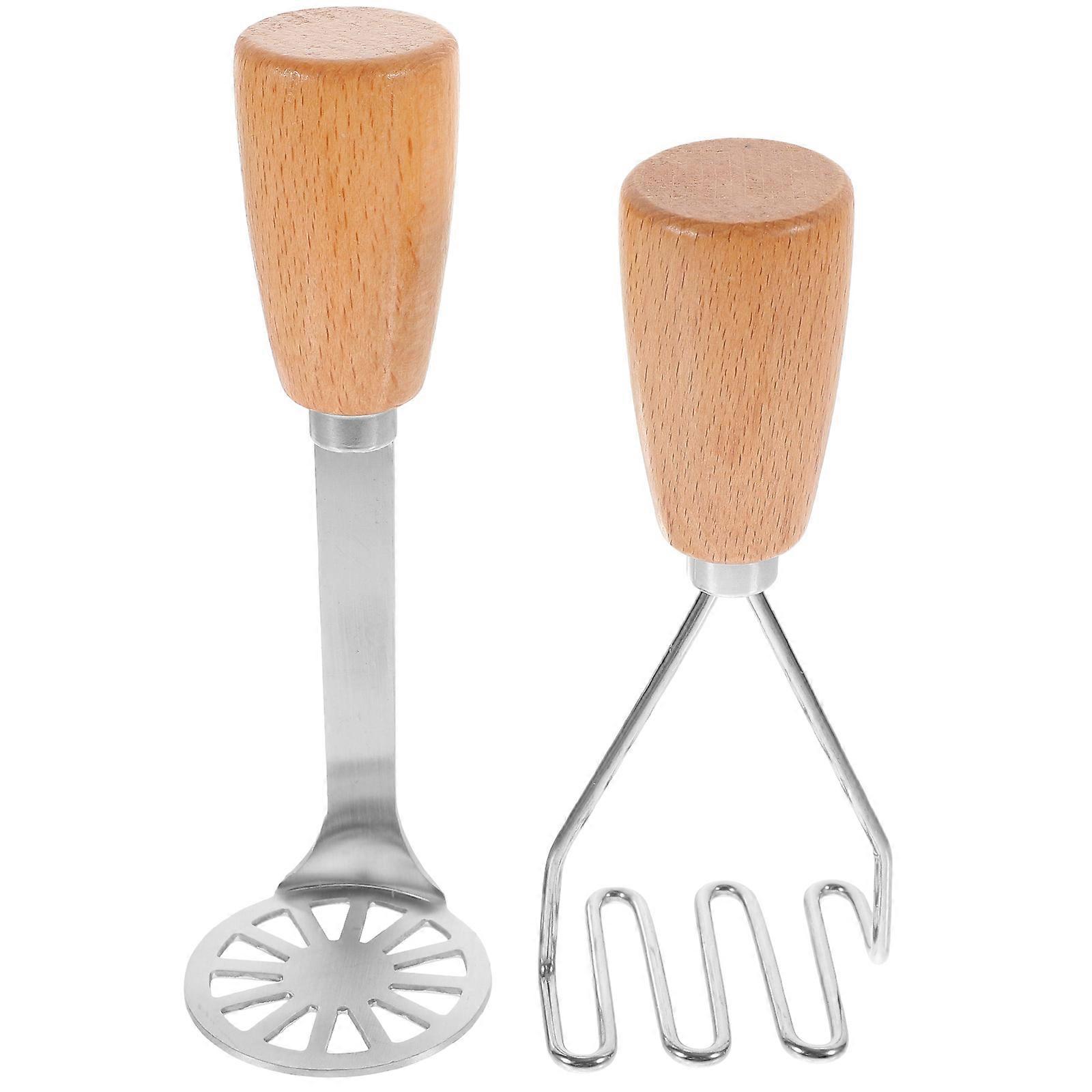 Manual Potato Presser Stainless Steel Potato Masher Kitchen Tool Wooden Handle 2Pcs