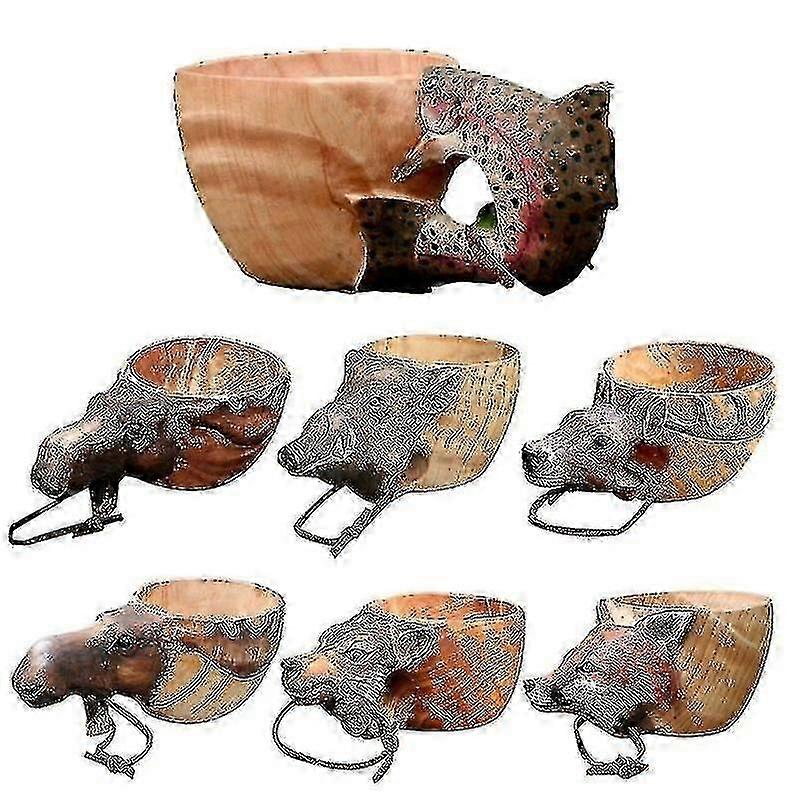Hand Carved Wooden Mug Kuksa Guksi Animals Head Image Cup Wooden Mug Animal Shape Portable Camping Drinking Cup Drinking Cup