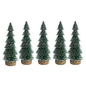 Snowy Christmas Tree Desk Decors Delicate Snow Decorated Christmas Tree Set with Wood Stand for Festival Ambiances 26CM 5 pieces