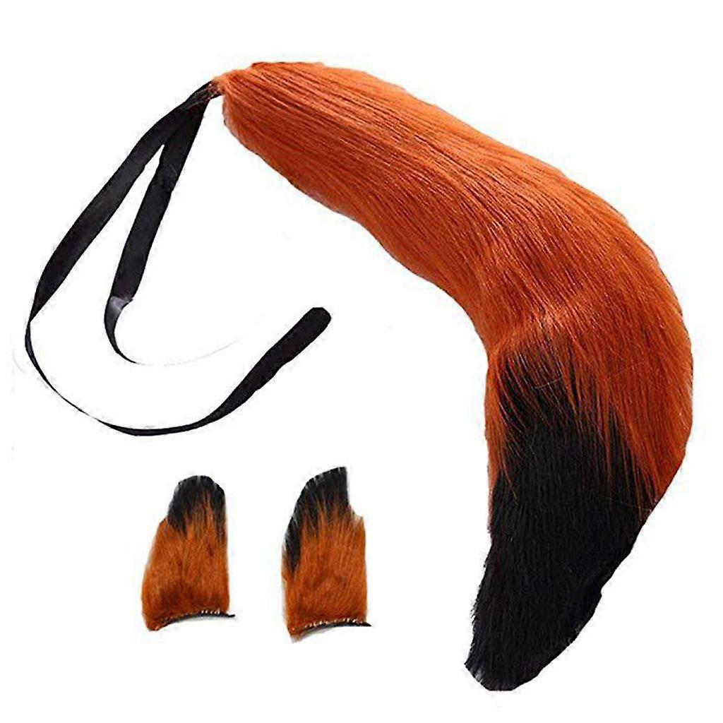 Fluffy Faux Fur Wolf Long Tail and Hair Clips Ears Kits Halloween Party Dress Up Gradient Animal Cosplay Costume Accessories for Kids Adults