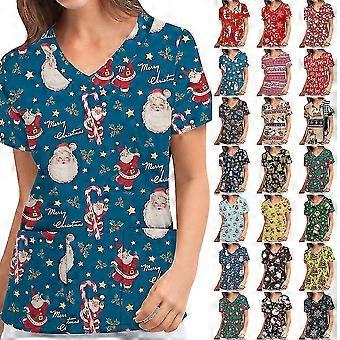 Χριστούγεννα γυναίκες νοσηλευτική ομοιόμορφη απολέπιση κοντό μανίκι T-shirt Χριστούγεννα μπλούζα Tee Κορυφές V λαιμός