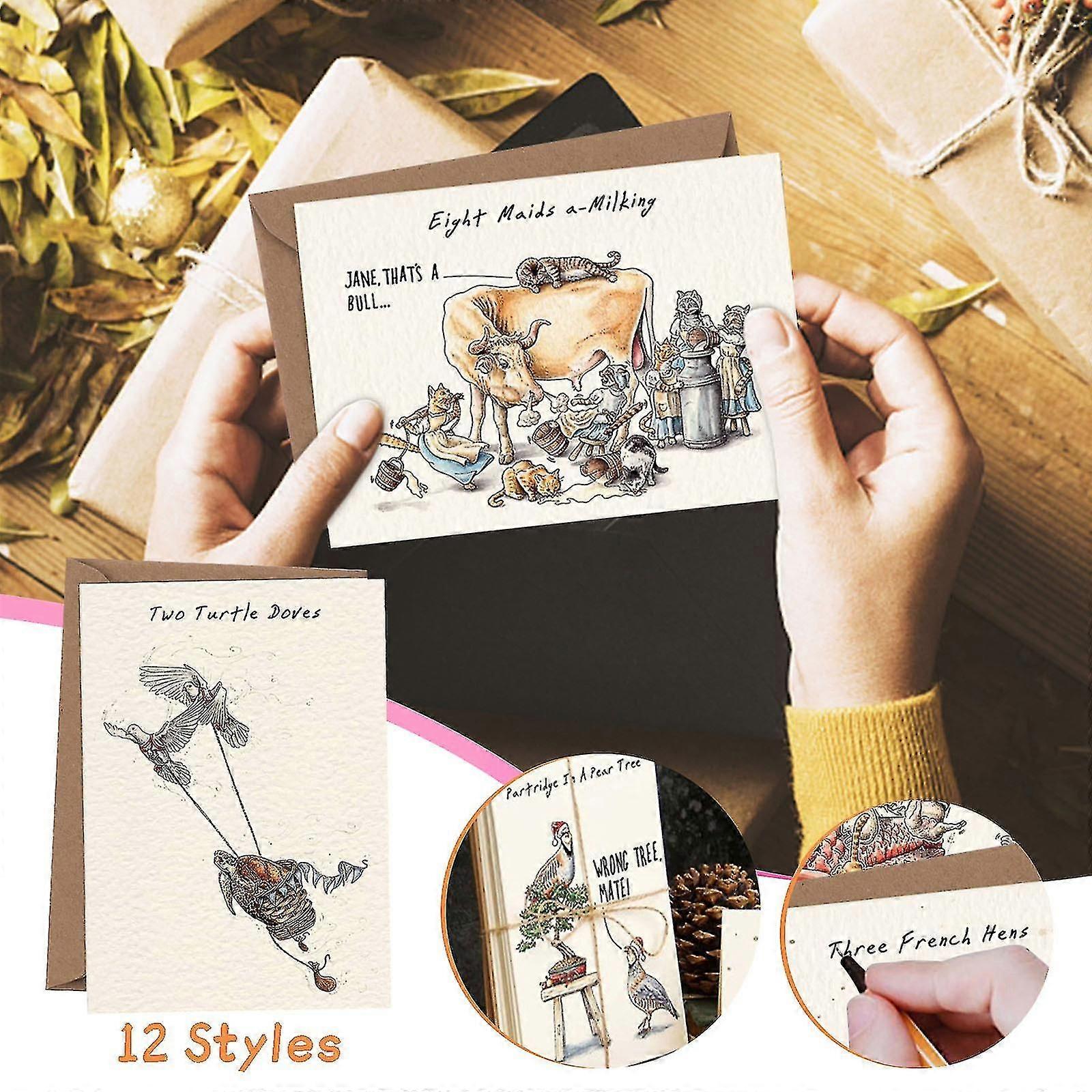 Twelve Day Christmas , 12 Packs Of Funny Christmas Cards, Customized Messages And Envelopes, Christmas Gift Countdown Film Collection