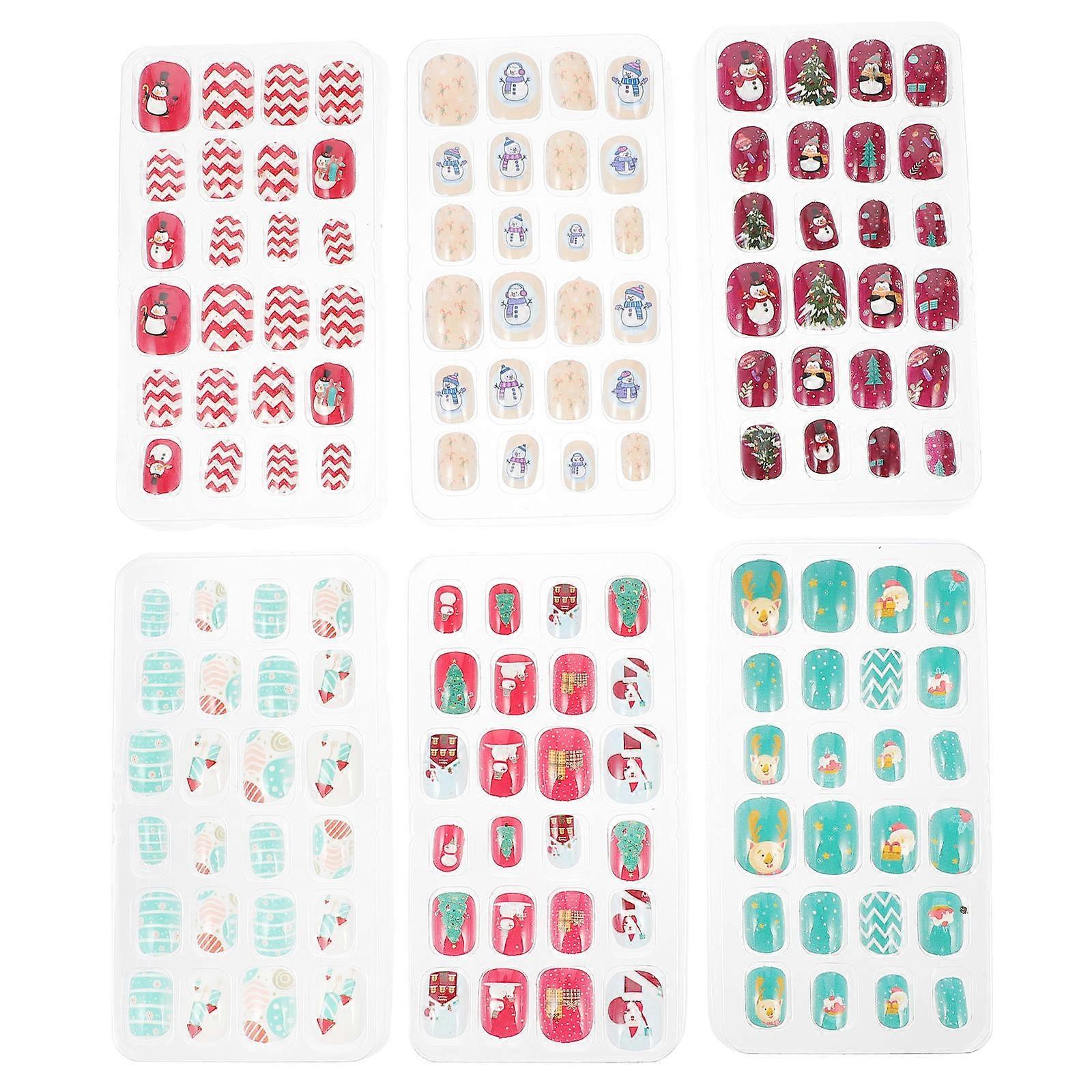 Christmas Themed 144Pcs DIY Nail Art Supplies Fashion Girls False Nails Tips For Assorted Color Nails