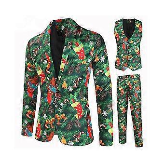 Χριστούγεννα 3τμχ/σετ Ανδρικό Κοστούμι Επαγγελματικό Τυπωμένο Παλτό Blazer Παντελόνι Γιλέκο Σετ