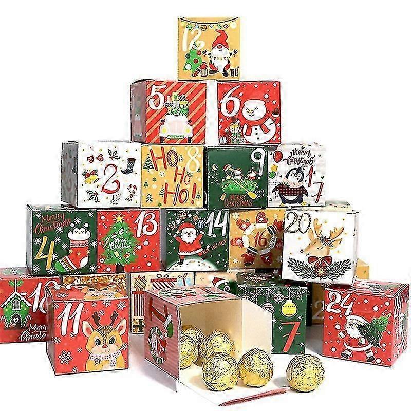 Christmas Advent Calendar Boxes 24 Days Boxes Paper Advent Countdown Gift Boxe--