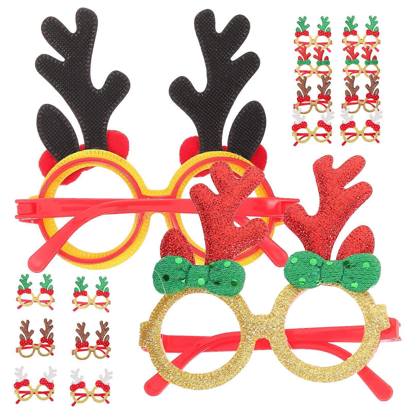 Christmas Sunglasses Kids Reindeer Antler Glasses Party Favors Costume Prop Brown Creative Antler Sunglasses 12Pcs