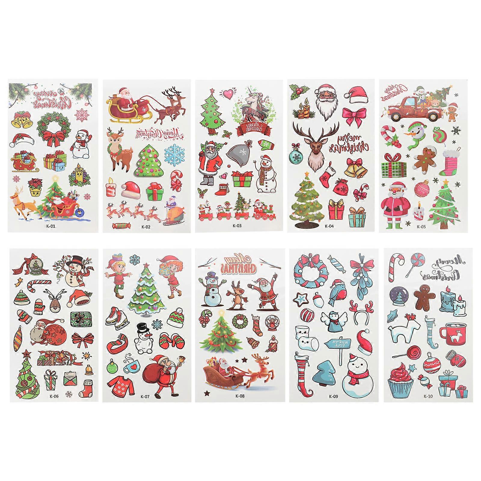 Christmas Cartoon Childrens Tattoo Stickers Water Splashing Game Waterproof 40 Sheets